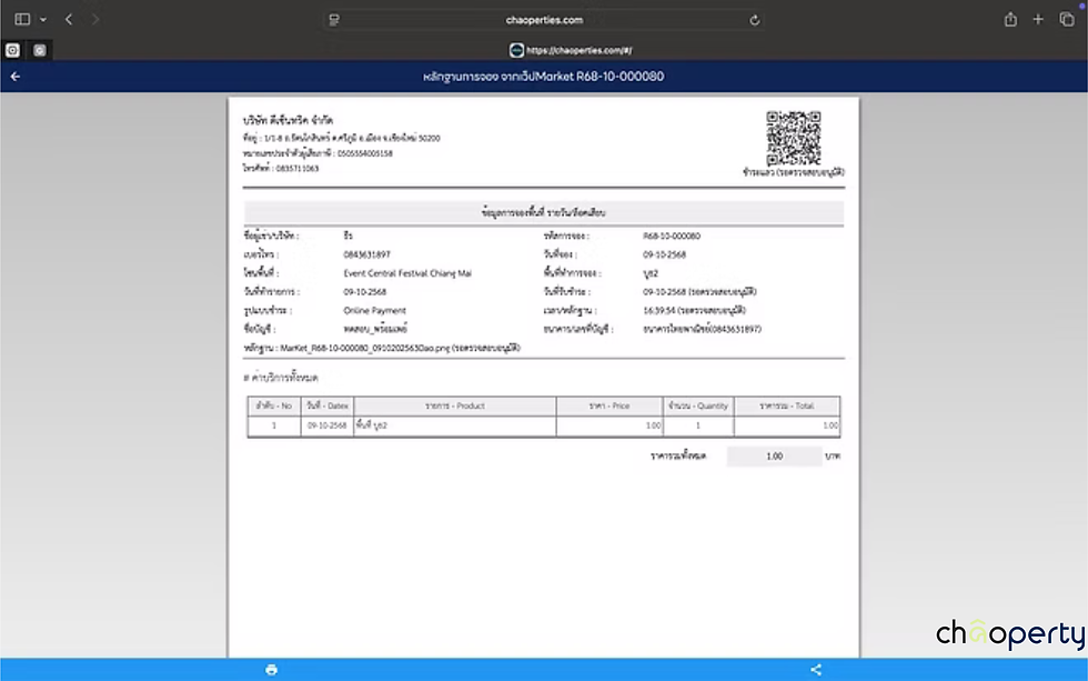 กด "พิมพ์" เพื่อพิมพ์เอกสารใบเสร็จรับเงิน(สำหรับ Web Market)